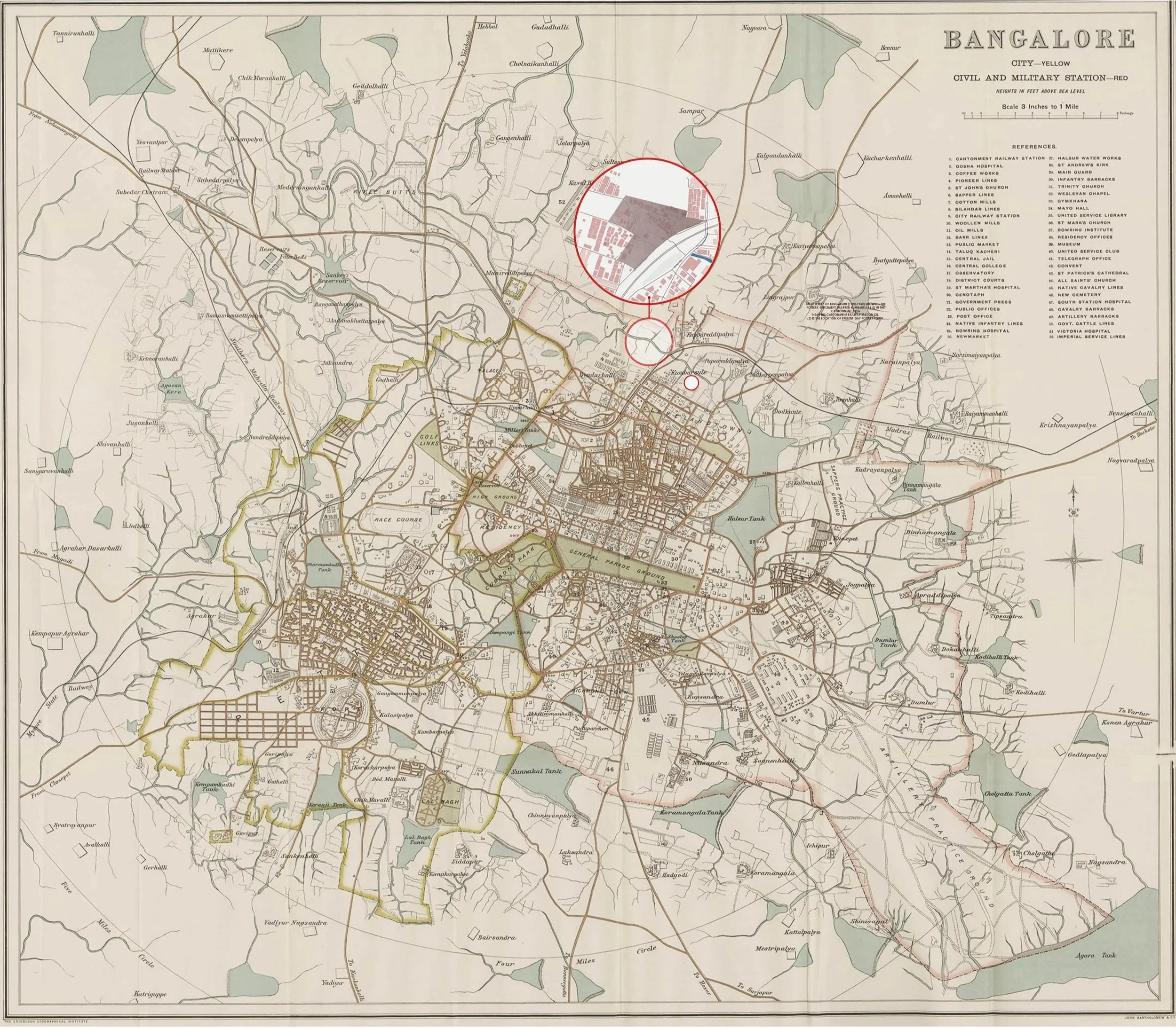 Old map of Bangalore showing the location of Pottery Town (Source: British Library)